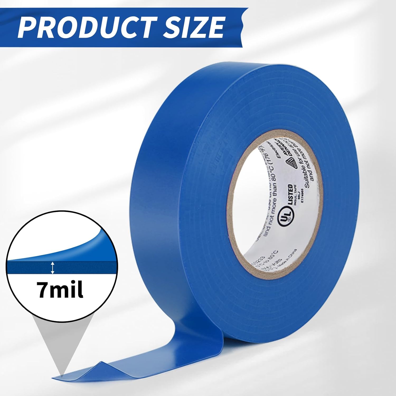 "Avery Dennison 10 Rolls ¾ in x 66 ft Blue(EE-100) + 10 Rolls ¾ in x 66 ft Blue(Pro-36C) Electrical Tape Grade: General Use(EE-100) Grade: Professional Grade(Pro-36C) Material Type: PVC Elongation: 200%(EE-100) Elongation: 300%(Pro-36C) Temperature Range: 32°F to 176°F(EE-100) Temperature Range: -0.4°F to 221°F(Pro-36C) Withstand Voltage: 600 Volts Special Feature: Waterproof, Flame Retardant, Heat & Weather Resistance Certification: UL, CSA and VDE Compliance: RoHS and REACH Highly Insulating and Adhesive Ideal for most wiring projects and repairs including wire splicing, cable insulation, wire bundling and more"
