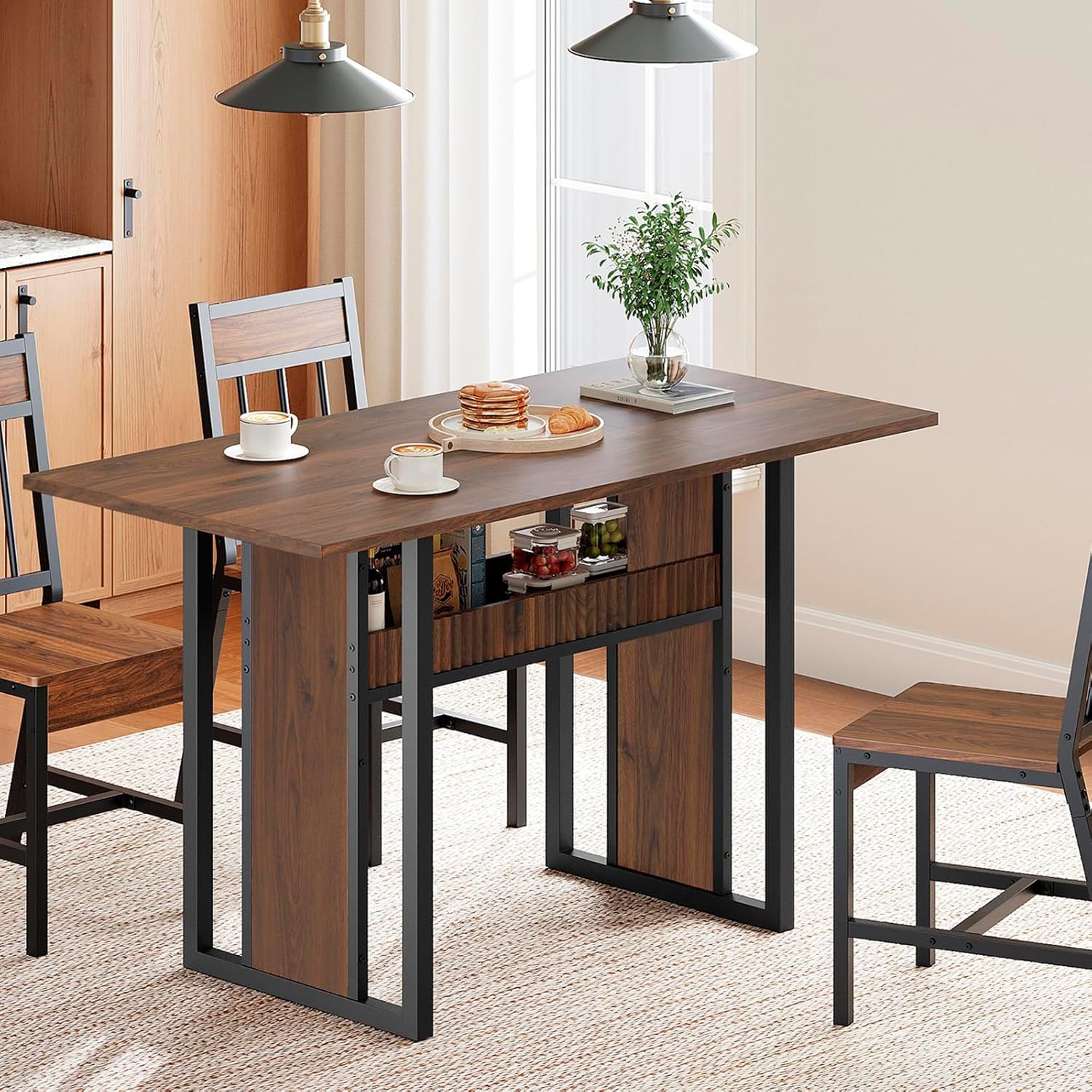 YATINEY Bar Table, Kitchen Dining Table, Bar Counter Height Table, Pub Color Matching Breakfast Table, Dining Table, 47.2 Inches Kitchen Table, Farmhouse Rectangular Dining Room Table with Storage Shelf, Wooden Kitchen Table, Wave-Design Open Compartment, BT02BB-CZ01BH