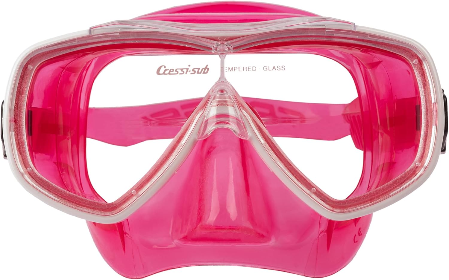 The Onda has a single tempered glass lens and is designed for adults. It is ideal for snorkeling, scuba diving, and swimming in open water. The skirt is made of soft hypoallergenic transparent silicone, ensuring comfort and an excellent seal on many face types. The visibility provided by the single lens, along with the unusual shape of the frame that extends in all directions, makes it ideal for having the scuba diving equipment under control. The length of the strap is easy to adjust, thanks to the quick-adjustable strap buckles. The Onda is designed and manufactured in Italy by Cressi, an Italian brand pioneer in scuba diving, snorkeling, and swimming equipment since 1946. The product is covered by a 2-year limited warranty.
