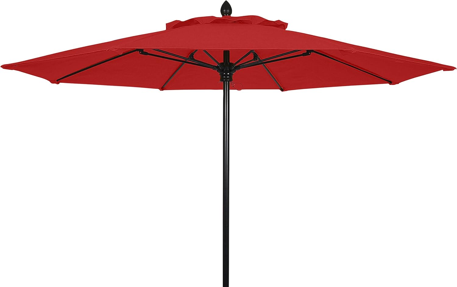 Protect yourself from the sun under the Fiber Built Market Umbrella. They are ideal for use in high traffic environments and windy locations. Made with flexible fiberglass ribs with molded nylon joints, hubs and end tips. The two piece 1 1/2" diameter pole is available in a variety of powder coated finishes. Canopy is made from marine grade dyed acrylic and available variety of colorful options. Features a single vent canopy with vent ties and storage ties. Canopy lift options include crank, pulley and pin and push and pin.