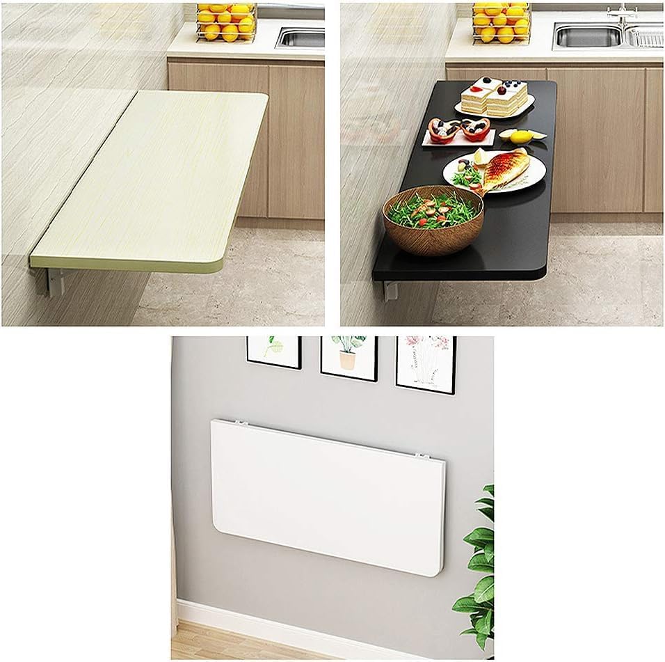 This wall-mounted folding table is ideal for JNHWll apartments, compact spaces, and minimalist aesthetics, thanks to its modular design. Its sleek finish effortlessly complements any home decor, making it a versatile addition to laundry rooms, home offices, kitchens, and dining areas. It can even serve as a sewing table or a family bar. Featuring two folding designs, this table provides additional space when you need it\u2014perfect for dining, working, drawing, or painting. On a daily basis, it can be folded in half to function as a storage shelf, helping you save valuable space. This multifunctional table can be used as a computer desk, dining table, storage shelf, vanity, cat perch, or bar table, adapting to various needs in your home. Specifications: - Material: MDF - Color options: White, walnut, brown, black, light yellow - Overall dimensions: 40*30cm, 50*30cm, 60*30cm, 60*40cm, 70*30cm, 70*40cm, 80*30cm, 80*40cm, 90*30cm, 90*40cm, 100*30cm, 100*40cm, 120*30cm, 120*40cm Customer Service: If you have any suggestions or questions before or after your order, please reach out via email, and we will respond within 24 hours.