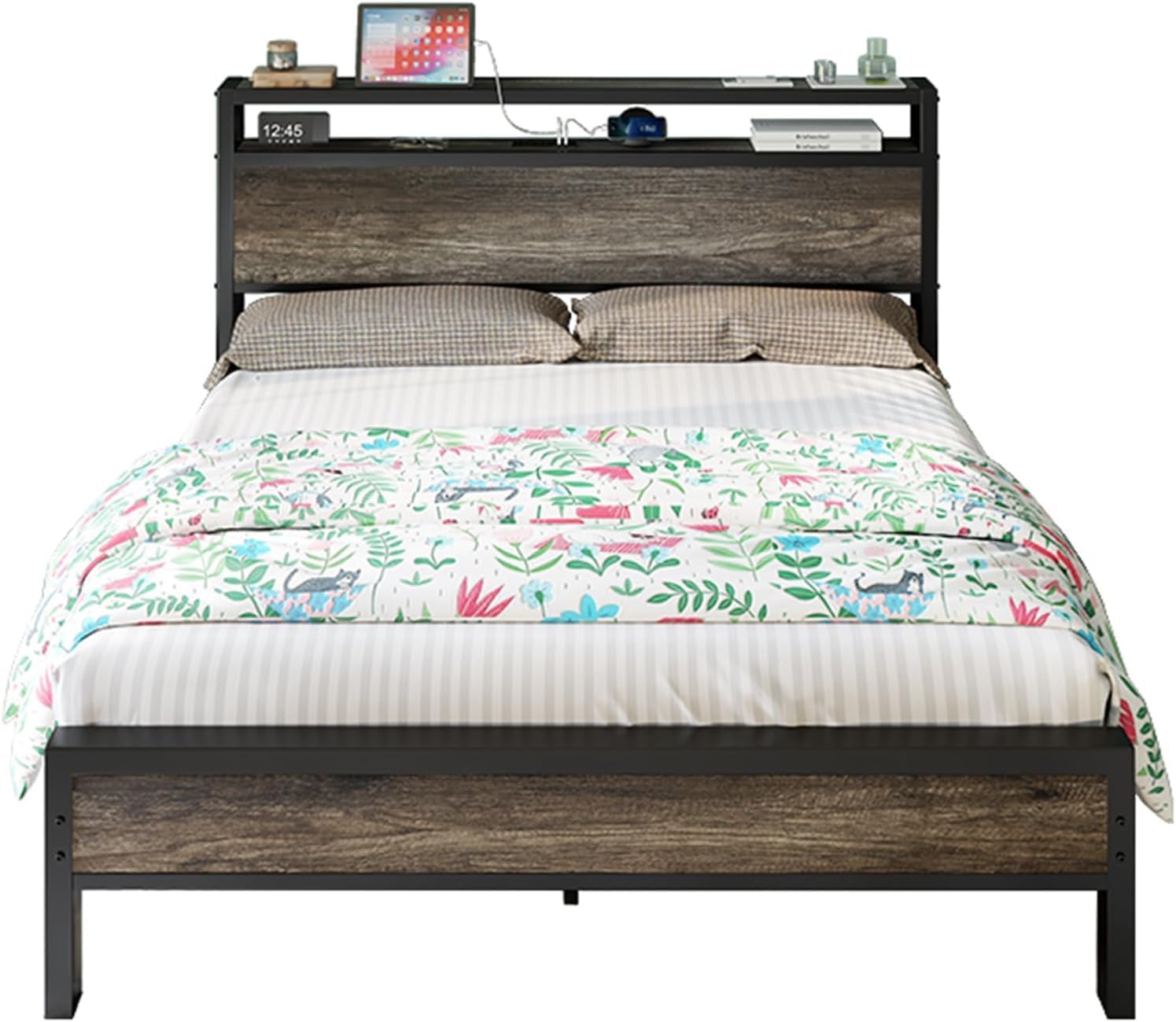 | Other Special Features of the Product | 12.5" under bed clearance, 2-Tier storage headboard, Easy assembly, Industrial and rustic style, No Box Spring Needed |