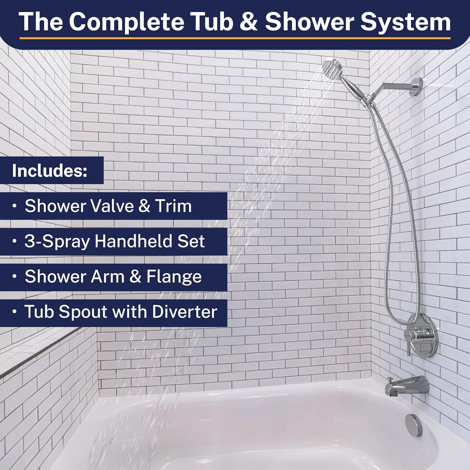 Transform your bathroom with the HammerHead Tub Shower Faucet Set with Valve, Trim, Handheld Shower Head, 7" Arm, 72" Hose and Spout – a complete bathtub shower faucet solution that combines a sleek matte black shower faucet set with a versatile shower system featuring a shower head and faucet set, ideal for any bathroom remodel; enjoy the convenience of a shower kit that includes a black shower head and handle set, perfect for a stylish tub and shower faucet combo, while the brushed gold shower system option adds a touch of elegance, making this shower hardware set a must-have for modern shower sets for bathroom enthusiasts.
