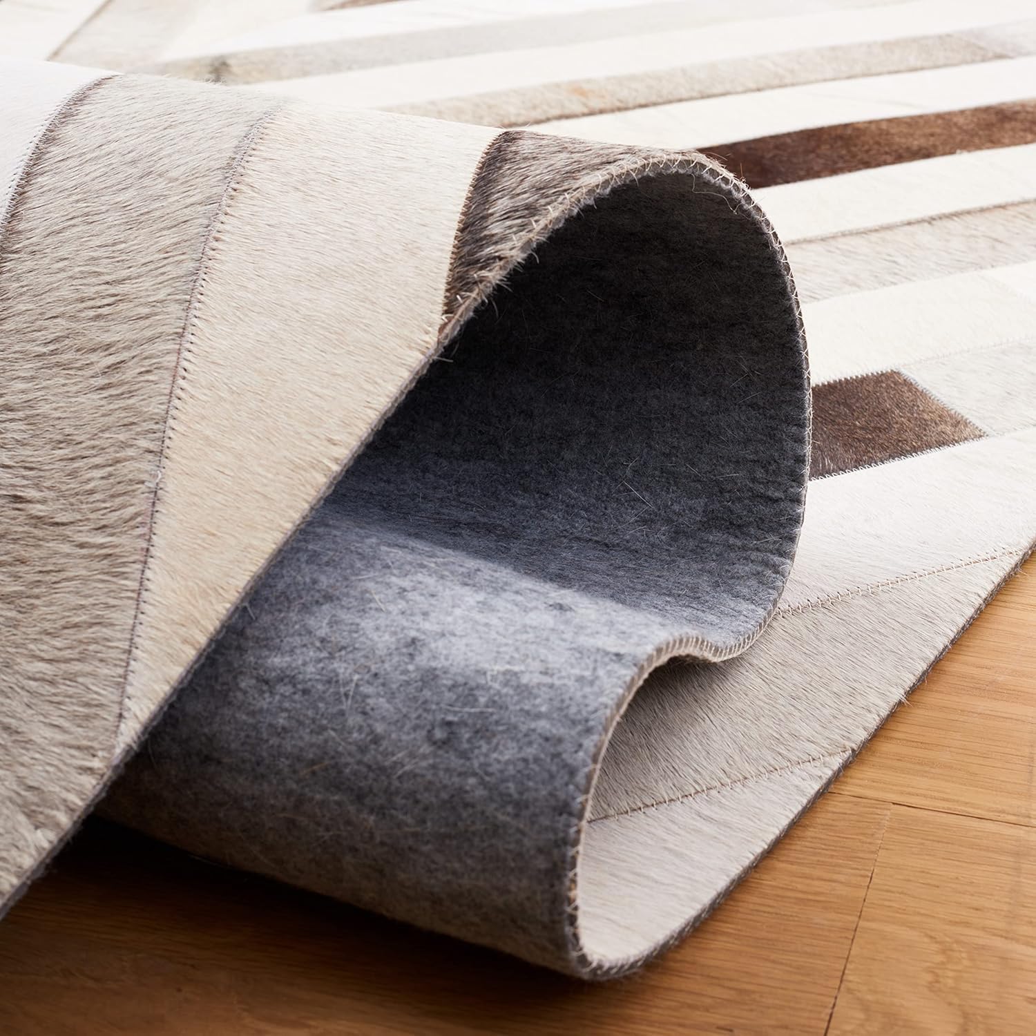 Experience the pinnacle of style and sophistication with Studio Leather rugs from Celestial Rug. These rugs are meticulously crafted using the highest quality cowhides and leather, offering both fashion-forward aesthetics and tactile richness. The Studio Leather collection stands out with its diverse range of designs, catering to various tastes and interior themes. From classic square patchwork rugs that evoke timeless elegance to cutting-edge creations featuring intricate appliqued geometric cutouts, each piece is a testament to modern design innovation. The hand-stitching process used in the creation of these rugs ensures that each one is not only a functional accessory but also a contemporary piece of art. The collection showcases a spectrum of natural cowhide tones, which beautifully complement both minimalist and eclectic interiors, alongside vivid primary colors that add a dynamic and eye-catching element to any room. Whether enhancing the warmth and character of a high-traffic living room or adding a touch of luxury to a cozy bedroom, Studio Leather rugs are designed to elevate your space with their unparalleled craftsmanship and visual impact.