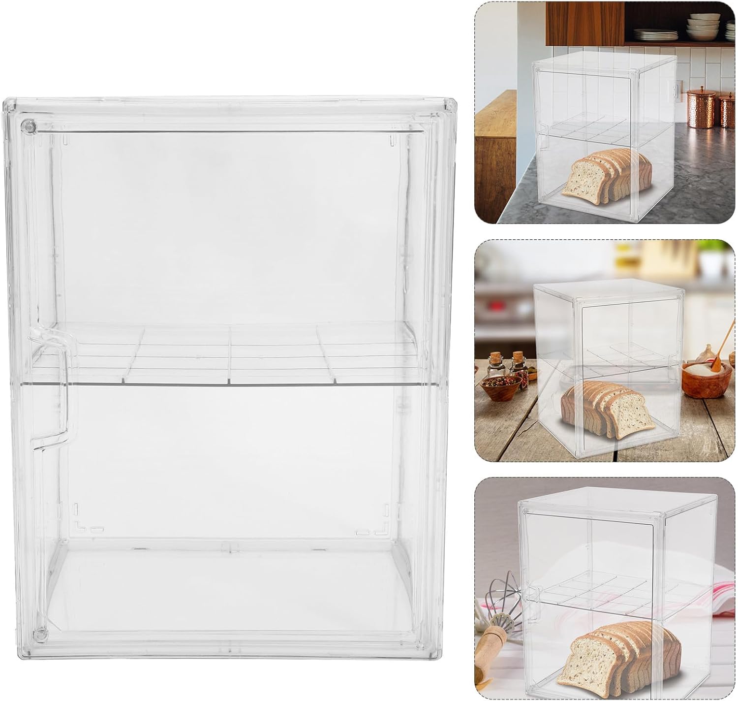 Package List 1 x bread box Characteristics -Size:36.00X28.00X25.00cm/14.15X11.00X9.82in -Color:Transparent -Material:Acrylic -Product Info:Bread box -Our bread savers are compact enough to save you valuable countertop space to store your bread or bake cookies bread storage organizer -Wide application, suitable for home bread storage, bakery bread storage, bakery bread display and so on household bread holder. -Our bread box is very light that you can easily move it, and with clear design, allows you to see the inside easily bread holder. -With double-layered structure, the storage box has a large capacity, and is a space-saving storage box countertop bakery case. -Made of acrylic material, firm and , easy to clean, you can use it without any puzzles.Goods Informationkitchen bread container Do you always worry about the cluttered tables in the kitchen? Are you tired of cleaning the kitchen? If so, don't wait any longer, come and take at our creative and multi-function storage box that can help you store your different kinds of bread, and other kitchen supplies