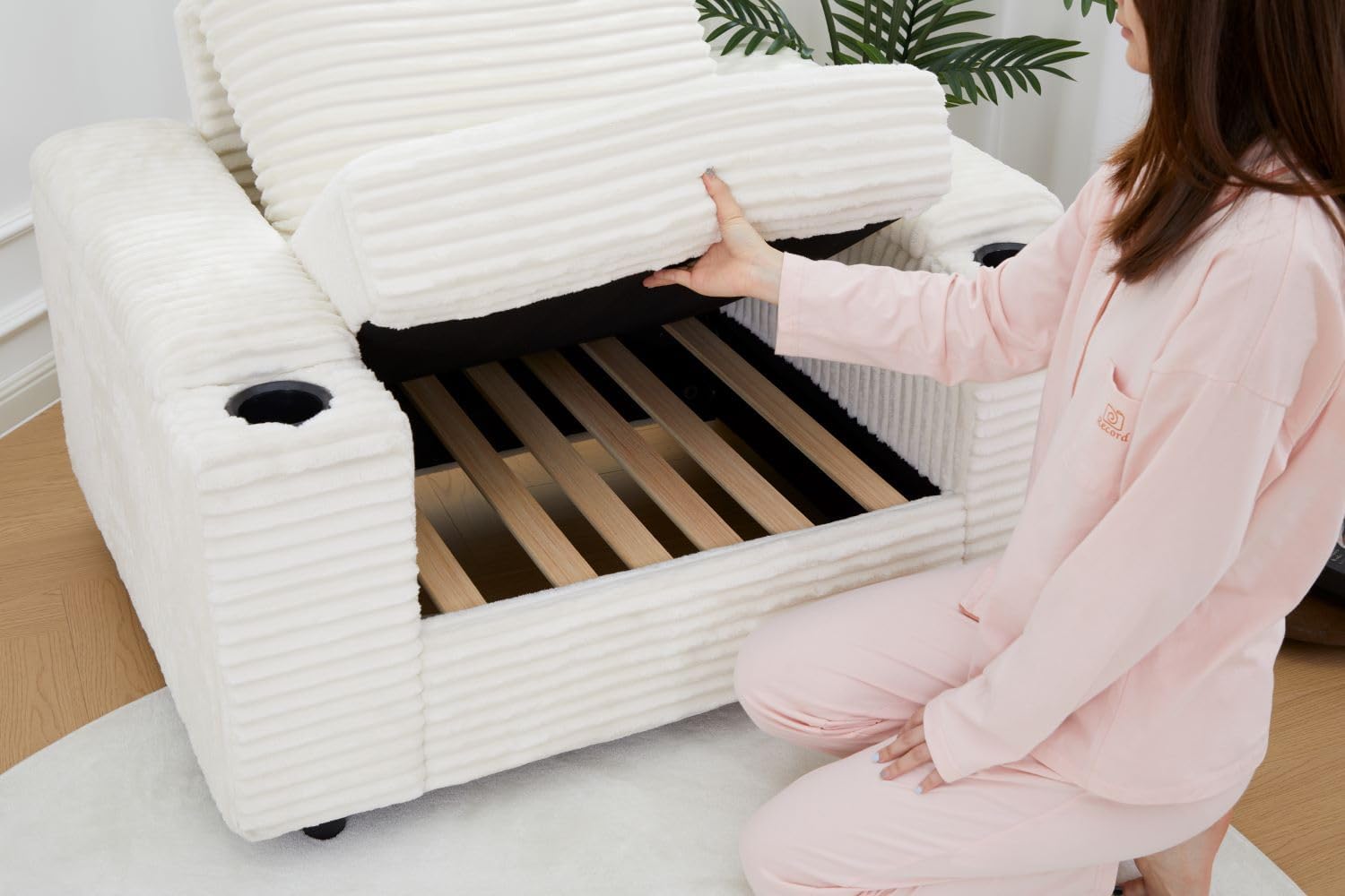 | Additional Features | Charging Station, Cup Holders, Deep Seat, Movable Ottoman, Wood frame |