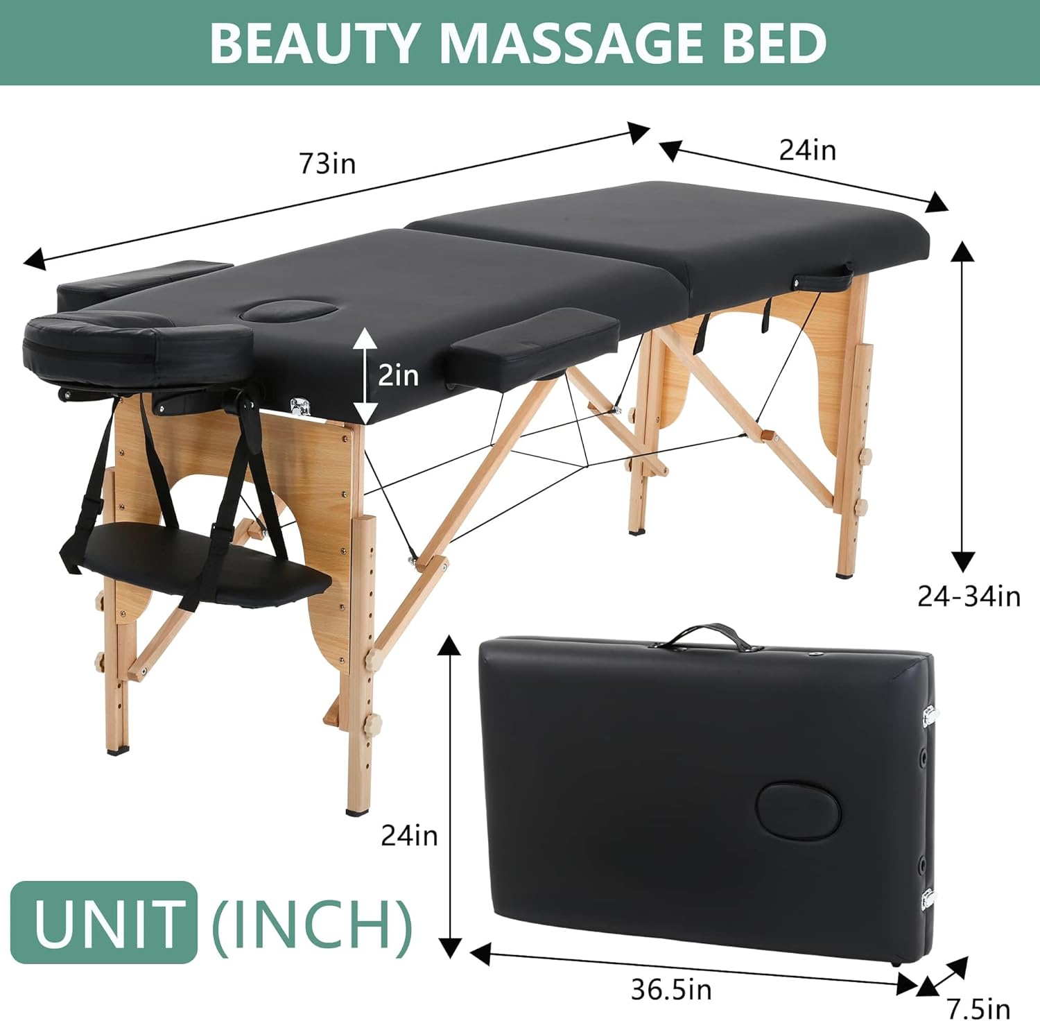 Product Description:The Ruesleag Massage Table is the ultimate solution for professional therapists, therapy students, and home users alike. This portable massage table offers exceptional comfort and strength, thanks to its precision-crafted hardwood construction and high-density luxury padding. It is designed to be easy to set up, making it convenient for therapists to prepare for sessions quickly. The height adjustable feature allows for customization based on individual needs and preferences. Additionally, this massage table is lightweight and comes with a carrying case, making it portable and perfect for therapists on the go. The sturdy hardwood frame ensures stability during treatments, while the premium foam padding provides optimal comfort for clients. The Ruesleag Massage Table also includes a removable and adjustable headrest, armrests, and a spacious 24-inch width. Don't miss out on this versatile and reliable massage table that will enhance any spa or salon experience.- Comfortable and exceptionally strong massage table features a full 2-fold of high-density luxury padding, ensuring a comfortable massage experience.- Easy to set up massage table, allowing you to quickly prepare it for use.- Humanized height adjustable massage table,can be customized to suit the needs of different therapists and clients.- Portable and lightweight massage table, comes with a carrying case, making it perfect for therapists on the go or for home use.- Sturdy hardwood frame structure providing stability and durability for long-lasting use.