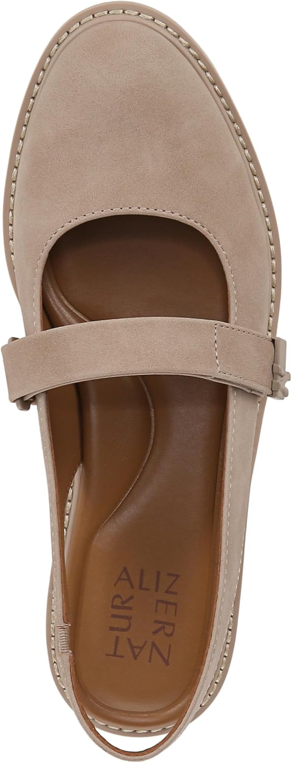 From our Lite Series // Classic, but better: A slingback strap, lightweight feel and wedge heel kicks these Mary Jane shoes up a notch. Slingbacks with Mary Jane inspired strap and Naturalizer “N” heritage ornamentation. Synthetic upper with partially bio-based linings and an almond toe. Adjustable hook-and-loop top strap. Contour+ Comfort technology for a premium fit and all-day comfort experience. Lug sole. Flexible and lightweight EVA sole. 3/4 inch platform, 1 1/8 inch wedge heel. Consciously packaged: 100% of our shoe boxes are made of 80% recycled paper + soy-based ink. Upper, insole and toe box crafted from partially recycled materials. WHY YOU’LL LOVE IT: Forever elegant silhouettes with all day wearability, available in an inclusive range of sizes and widths. Designed to the contours of a woman’s foot. The Beautiful Fit. Since 1927.