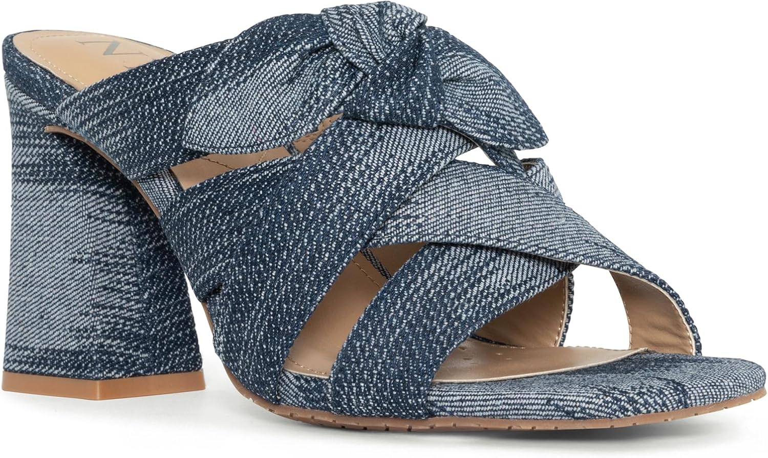 Description A must-have addition to your wardrobe: NYDJ's Loreri Mule Sandals in Streaked Denim. This effortless pair is styled with a squared toe, criss-cross straps across the vamp, a knotted bow and a flared block heel that makes a bold statement. Memory foam padded insoles keep these shoes so comfy, while non-slip partially recycled rubber outsoles ensure safe steps every time. Style #: LORERIDN Fabric & Materials Denim upper, man-made lining, partially recycled rubber outsole Fit & Sizing Heel: 3.25"