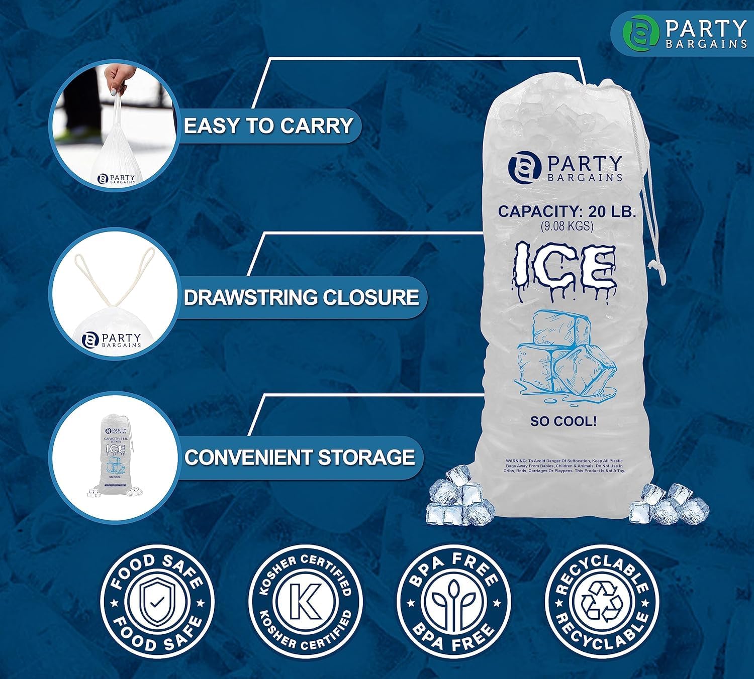 | Included Components | 100-Pack 20 lb Plastic Drawstring Ice Bags |