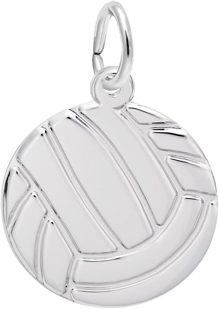 Volleyball charm by Rembrandt. Measures approximately 0.65 inches x 0.65 inches (16.53mm x 16.53mm). Available in several metals.