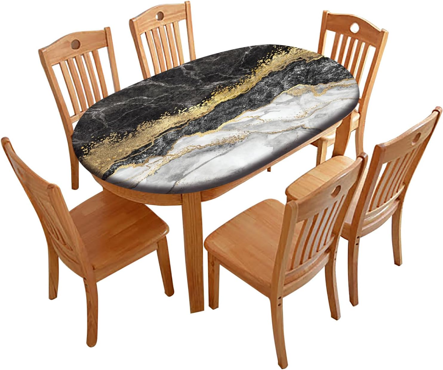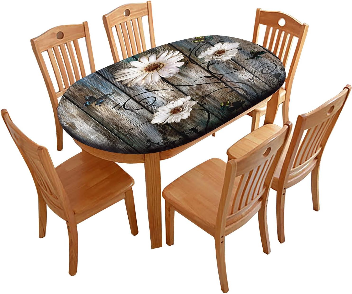 Polyester oval Tablecloths, Rustic Board Fitted Oval Table CoverFeatures:Protect Your TableThe fitted oval tablecloth is made of 100% polyester. Polyester is waterproof, moisture Proof, oil-proof, splash-proof to keep your furniture use longer time.The polyester table cover with elastic edges can firmly fits your table. When you are eating, don't worry someone get up rub the table caused beverage spilling careless.Specification:Materials: 100% PolyesterSize: Suit for 42X60 Inch TablePackage Includes: 1 Piece Oval Fitted Tablecloth ✔Hand-washing and machine washing are all available,but we suggest hand-washing and not dewatering, you can medium temperature ironing.✔Tablecloth is great for picnics, BBQ's, parties, dinners, restaurants, potlucks, everyday and more. Great for decorating your table.✔Protects your table from stains and damages. Easy care, easy clean-up. Stain prevention, water resistant and oil-proof.If you like this fitted oval tablecloth, click the cart to place your order now! Trust me, you will love it!