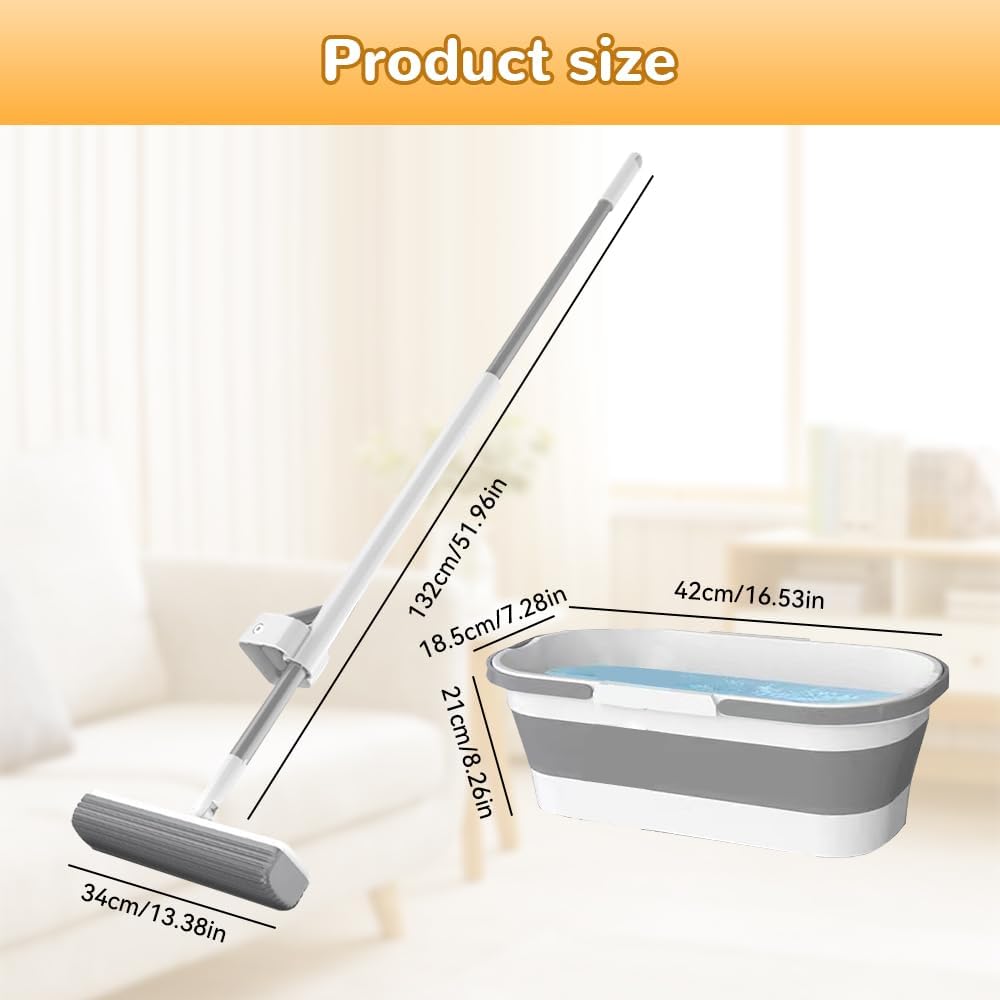 Self-Wringing Sponge Mops for Floor Cleaning, Self-Washing Roller Sponge Mop Household Cleaning Mop Self-Squeeze Sponge Mops Hands-Free Floor Mops for Kitchen BathroomSpecification:Material: PP, PVA, AlloyColor: WhiteSize: 34*132cm/13.4*52inPackage Includes (Optional):1* Sponge Mop with 2/4* Mop Replcement Heads【TIPS FOR USE】1. When not in use, the sponge will become hard without water.2. Before each use, the sponge must be soaked in water for 5 seconds to restore it to its original state.3. Replace or wring out the sponge head only when it is completely wet, soft and fully absorbent.