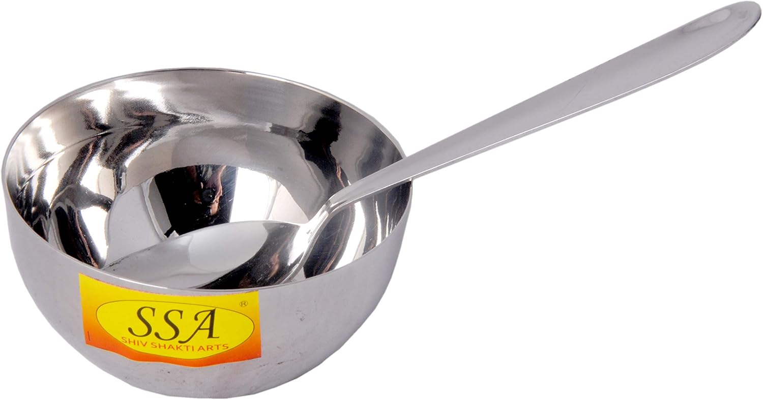 Make serving food hassle-free with the practical Shiv Shakti Arts Stainless Steel Thali/Plate Set! Made from 100% food-grade stainless steel, these plate Set are food-safe and durable addition to your dining room. The heavy-gauge material makes them sturdy for everyday use. Designed with smoothened angular walls, these spacious plates offer convenience in serving and keep food from spilling during consumption. Being dishwasher-friendly and easy to clean, they require minimal maintenance. Available in a 7 Pcs Set, these plates are suitable for serving a wholesome meal complete with rice, dal, 3-4 rotis along with 2 sabzis or Halwa to a company of Family.