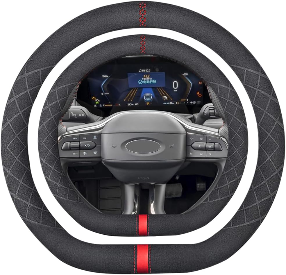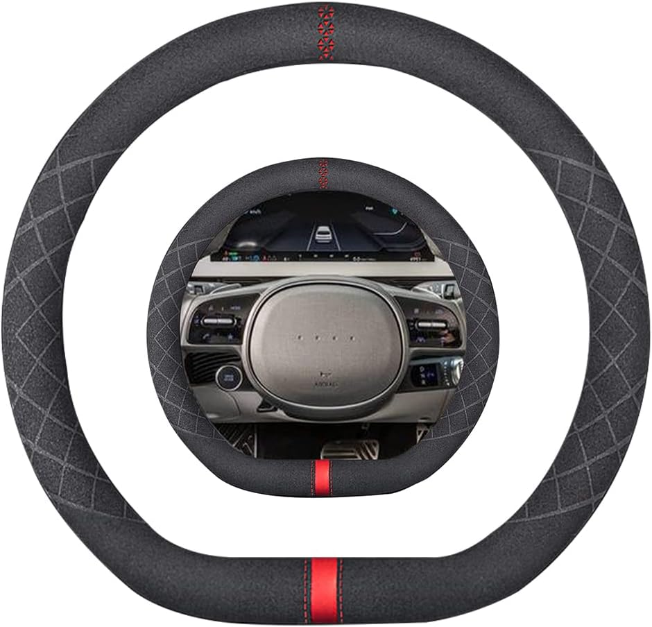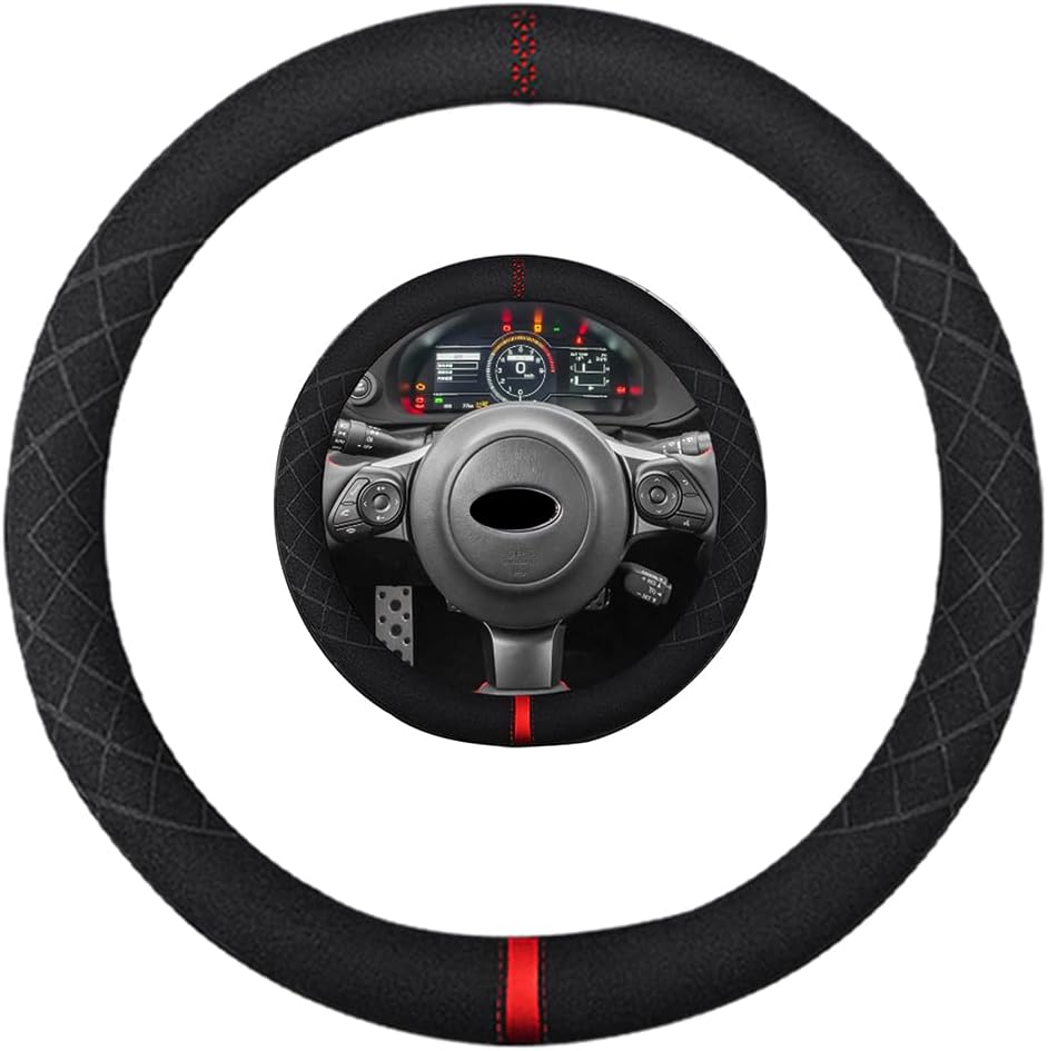 Product: K LAKEY Suede D Shape Steering Wheel Cover Compatible with Subaru WRX Suede Leather Sport Non-Slip Wheel Cover Car Interior Accessories 15 inch For Man and Women This is a Sport Suede steering wheel cover designed for real car lovers. No only decorate your car also provide you supercar driving experience. Compatible with: Subaru WRX 2015-2019 15 inch D shape steering wheel. Style:D-Shape Size:15 in x 15 in x 1.6 in (38cm x 38cm x 4 cm) Weight:1.43 lb (0.65 kg) Thickness:3.22 mm Featrue: 1.High-quality Soft Suede fabric with Suede touch which is sweat-resistant and dirt resistant and easy to take care of by wet towel. 2.Supercar touch with sports aesthetics, Grid hot embossing come with full of motion, ultra-thin design, only 3.22mm, No affect the driving grasp, Pattern lattice and leather alignment mark, Embellish your driving. 3.The standard mold design, compatible with 15 inches steering wheel. Protect both your hands and original steering wheel , keeps the steering wheel temperature suitable all the time, no affect driving due to the exposure in summer and the cold in winter, easy to install without tool Note: 1.This steering wheel cover is only suitable for the 15 inch (37 cm-38 cm) steering wheel. 2.Size 14-14.5 inch (36 cm-36.8 cm) and bigger than 15.7 inch (39.8 cm) steering wheels do not match with this cover. 3.Please measure the size of the steering wheel before purchase, so as not to be unable to install or fit tightly, which will affect the driving control. 4.Refer to the product measurement drawing for the measurement picture. Package Included: 1 x D- Shape Soft Suede Car Steering Wheel Cover